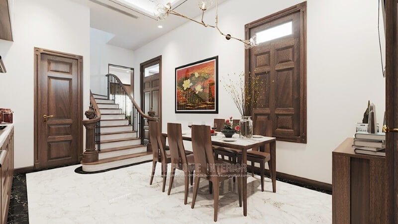 Bàn ăn gỗ hiện đại đủ lớn để phục vụ cho gia đình 6 người.
